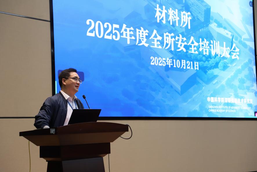 为深入贯彻落实国家、中国科学院及省市关于安全管理工作的部署要求,进一步压实安全责任、强化全员安全意识,中国科学院深圳先进技术研究院(以下简称“深圳先进院”)先进材料科学与工程研究所(以下简称“材料所”)于2025年10月21日下午在A504会议室召开2025年度全所安全培训大会。深圳先进院支撑平台处、综合处相关负责人,材料所领导班子、各中心科研骨干、各层级安全员以及新入职员工与学生共同参会。本次培训大会特别设立宝安材料院分会场,总参与人数近150人。
