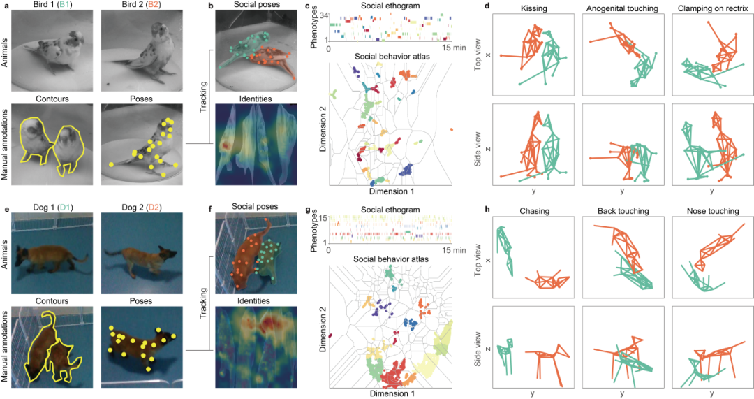 图5 SBeA量化鸟类和家犬的精细社交行为