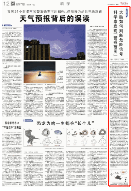 《中国青年报》:大脑如何判断危险信号 科学家发现“警戒范围”