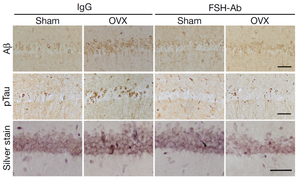 图 | FSH抗体治疗可以减轻卵巢切除后AD小鼠的