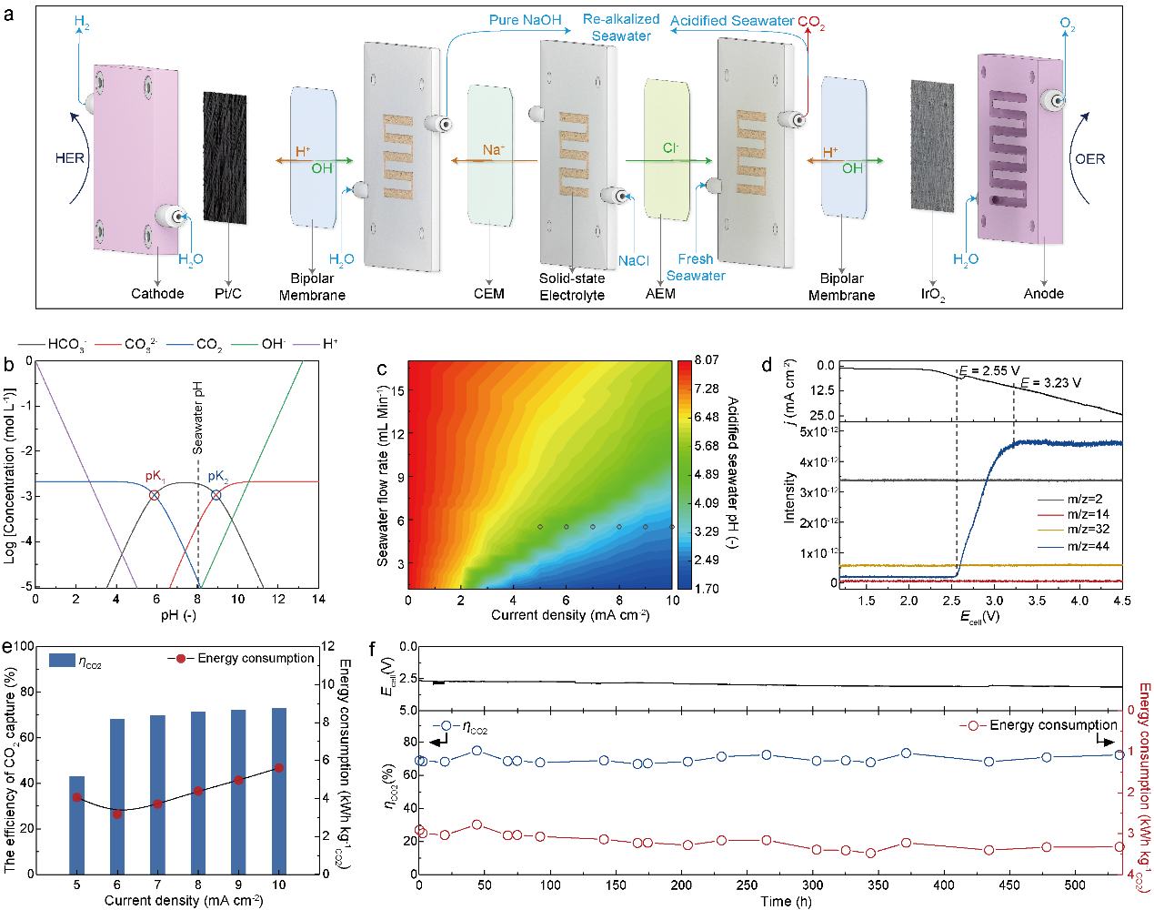 图2 | 利用固态电解质电解槽从海水中捕集二氧化碳。