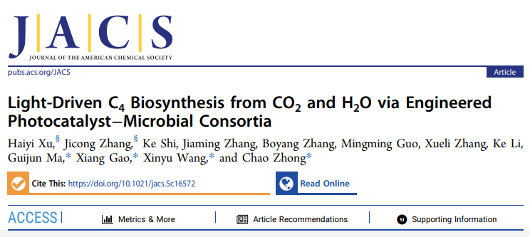 JACS | 光合万物:定量合成生物学全国重点实验室构建光催化剂-人工微生物群落杂合体驱动固碳高值化学品生物合成
