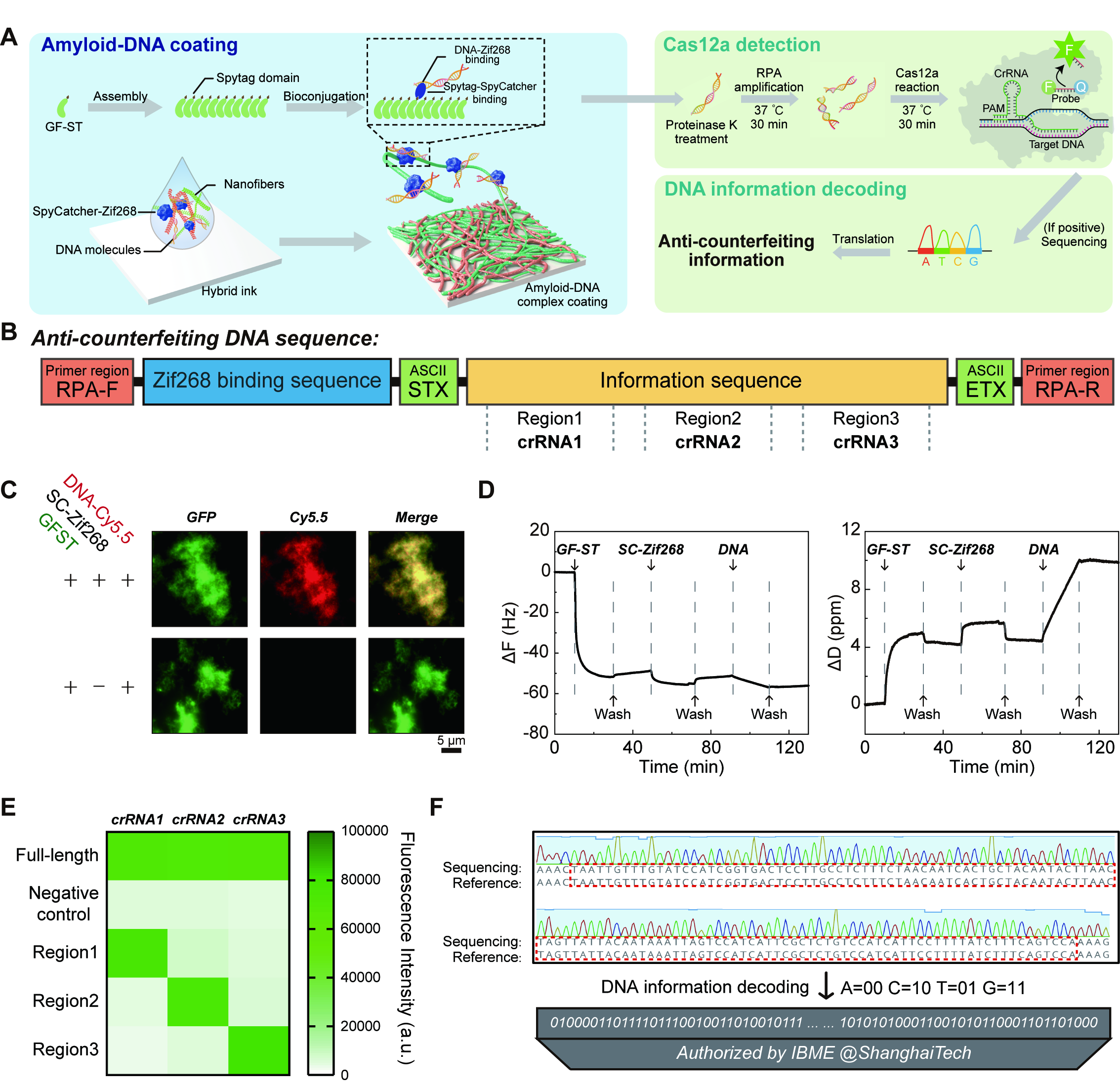 图3 |基于淀粉样蛋白涂层和DNA分子的防伪体系
